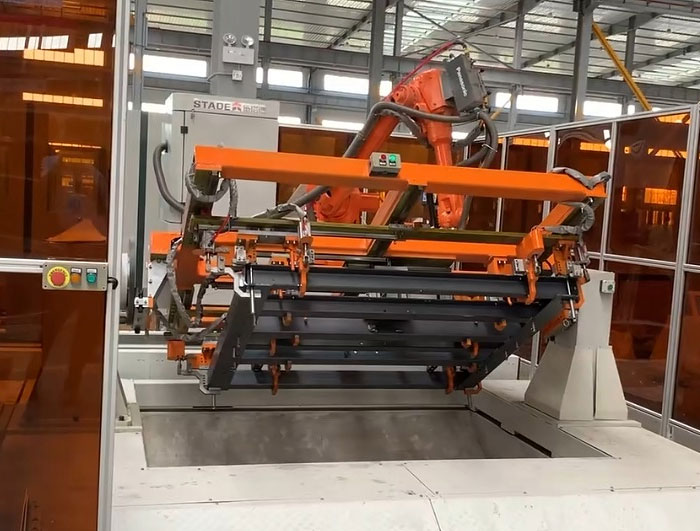 現(xiàn)代工業(yè)加工,多半采用機(jī)器人操作,一是技術(shù)需要,也替換了有些對人體會造成危害的加工流程。