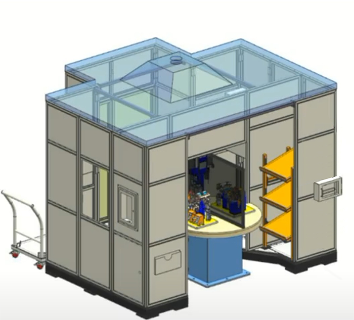 2.焊接防護(hù)門還起到一個隔斷作用,用來隔斷焊接所產(chǎn)生的有害物質(zhì)及焊接弧光;